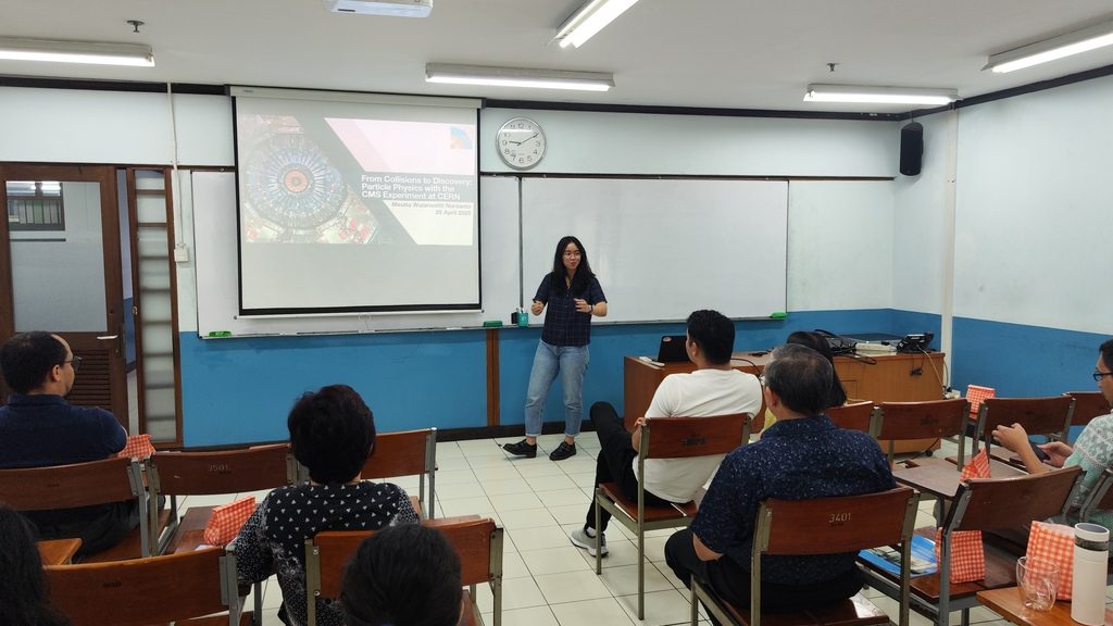 Bandung – Seminar Internal Fisika kembali hadir di awal tahun 2025! Narasumber kali ini merupakan seorang alumni dari Program Studi Fisika UNPAR angkatan 2013, yaitu Meutia Wulansatiti. Kak Meutia atau sering dipanggil dengan kak Muti, saat ini merupakan peneliti postdoktoral (Postdoctoral Associate) di Rice University dan aktif melakukan riset di CERN (European Organization for Nuclear Research). Kak Muti pada kesempatan ini membagikan pengetahuan yang ia dapatkan selama berkuliah dan riset di CERN.