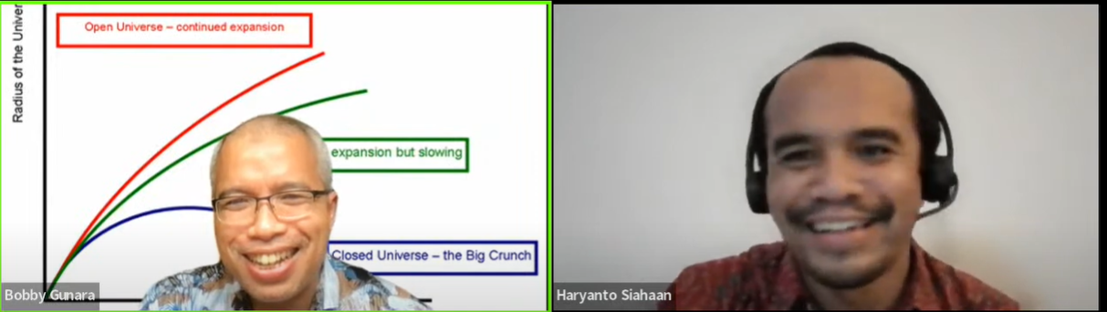 Seminar yang bertajuk Hairy Black Holes in Higher Dimensional Gravitational Theories diikuti oleh para fisikawan teori Indonesia yang berkecimpung dalam bidang gravitasi Einstein. Dalam seminarnya Prof. Bobby Eka Gunara memberikan review singkat mengenai gravitasi Einstein dan lubang hitam sebelum membahas beberapa aspek terkait lubang hitam dalam dimensi lebih tinggi. Secara spesifik materi yang disampaikan adalah hasil dari pekerjaan terakhir beliau yaitu teori Einstein-Skyrme dalam dimensi tinggi. Dalam paparannya, Prof. Bobby Eka Gunara juga menunjukkan kemungkinan terdapatnya solusi lubang hitam yang “berambut” dalam teori tersebut. Seminar ini kemudian diikuti oleh diskusi yang berlangsung sangat hangat dan menarik.