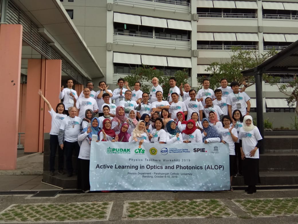 Workshop of Active Learning in Optics and Photonics (ALOP) kembali digelar untuk kedua kalinya di Universitas Katolik Parahyangan (Unpar). ALOP 2019 diselenggarakan atas kerjasama antara Fakultas Teknologi Informasi dan Sains Unpar (FTIS Unpar) dengan Center for Young Scientists (CYS), The United Nations Educational, Scientific, and Cultural Organization (UNESCO), The International Society for Optics and Photonics (SPIE), International Centre for Theoretical Physics (ICTP), dan Pudak Scientific.